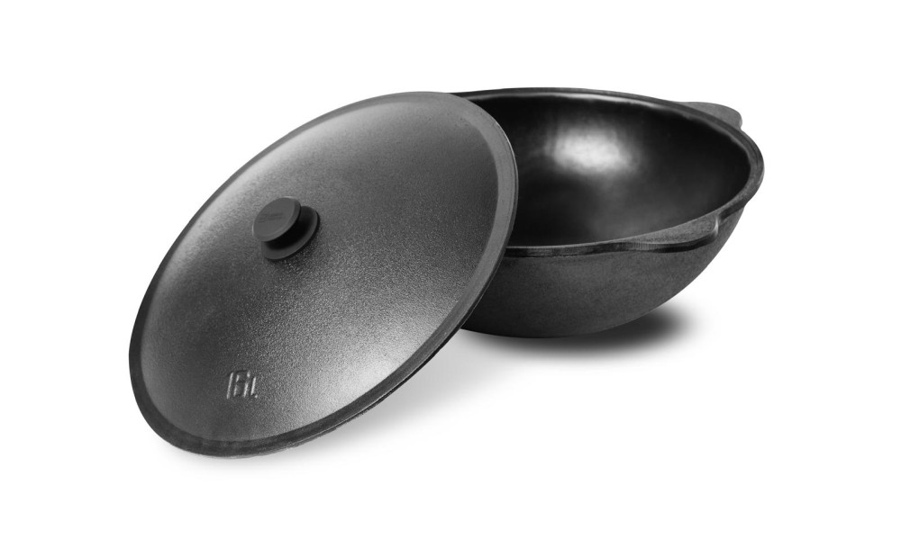 Чугунный узбекский казан на 16л - оригинальный, качественный, шлифованный чугунный казан. Алюминиевая крышка с силиконовой ручкой.