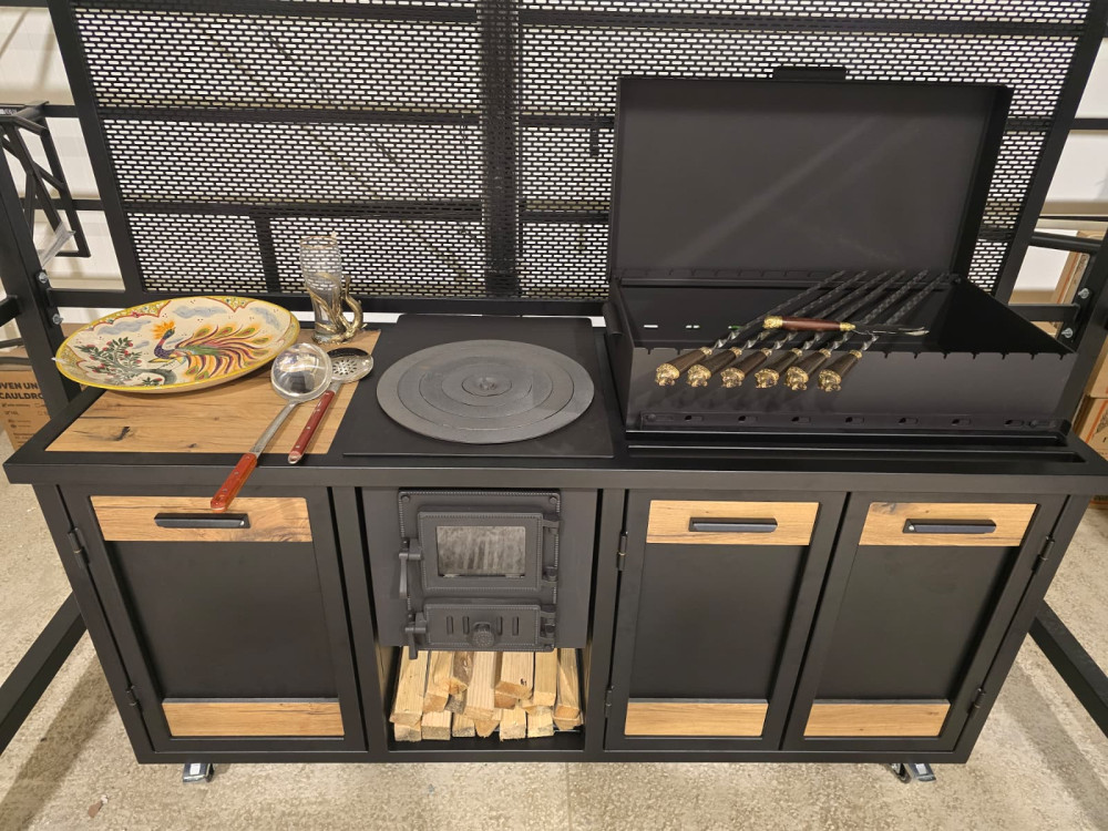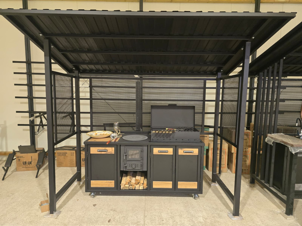 Virtuve sastāv no 3. moduļiem - krāsns, grils un darba virsma. Krāsota pulverkrāsā.
