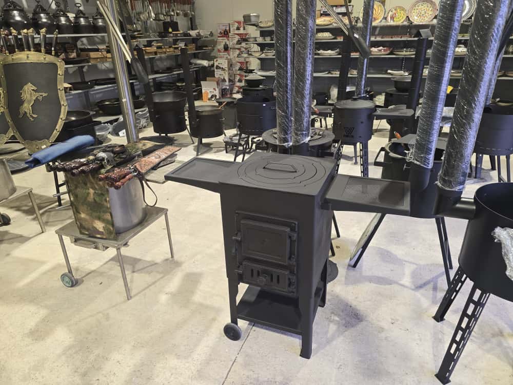Kods: Krāsns kvadrāts D40 ar plauktiem un dūmvadi